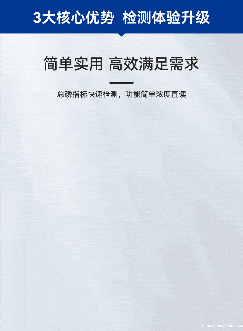 简要描述: 仪器符合《GB11893-1989-水质总磷的测定钼酸铵分光光度法》国家政策标准,可实现总磷指标快速检测,功能简单浓度直读,支持φ16mm管比色、30mm皿比色2种测量模式。3.5时高清彩色屏幕,表盘式UI清晰美观,标配LH-A109全新9孔消解仪,经济实用