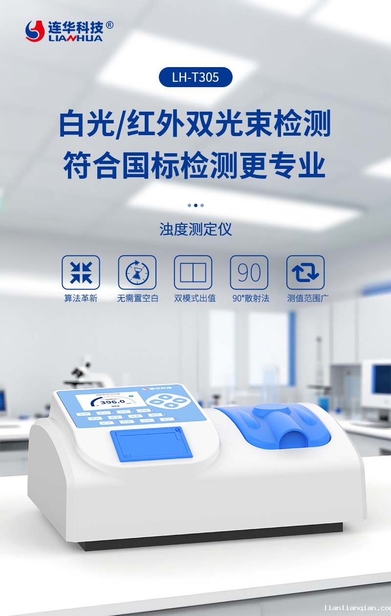 简要描述: LH-T305浊度测定仪符合《GB/T5750.4-2023》、《ISO 7027-1:2016(E)》、《EPA 180.1(US)》相关行业标准,采用90°散射法量可直接测量浊度范围40-4000NTU的样品浊度,能有效避免环境温度影响,测值更加稳定、可靠。内置常规模式和信号平均模式,常规模式适合多数样品,信号平均模式适合有悬浮物样品,满足各种场景检测需求。